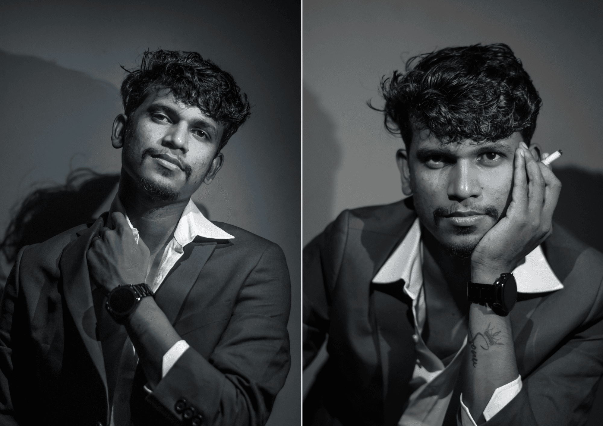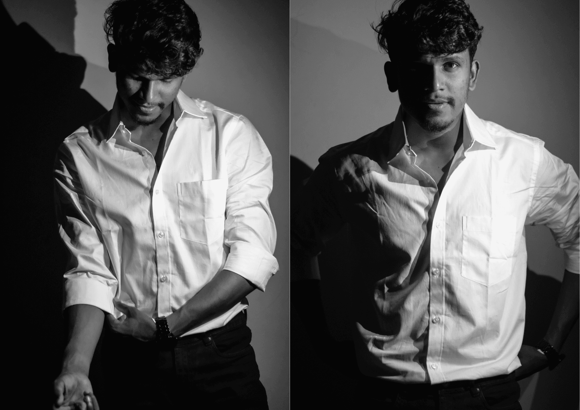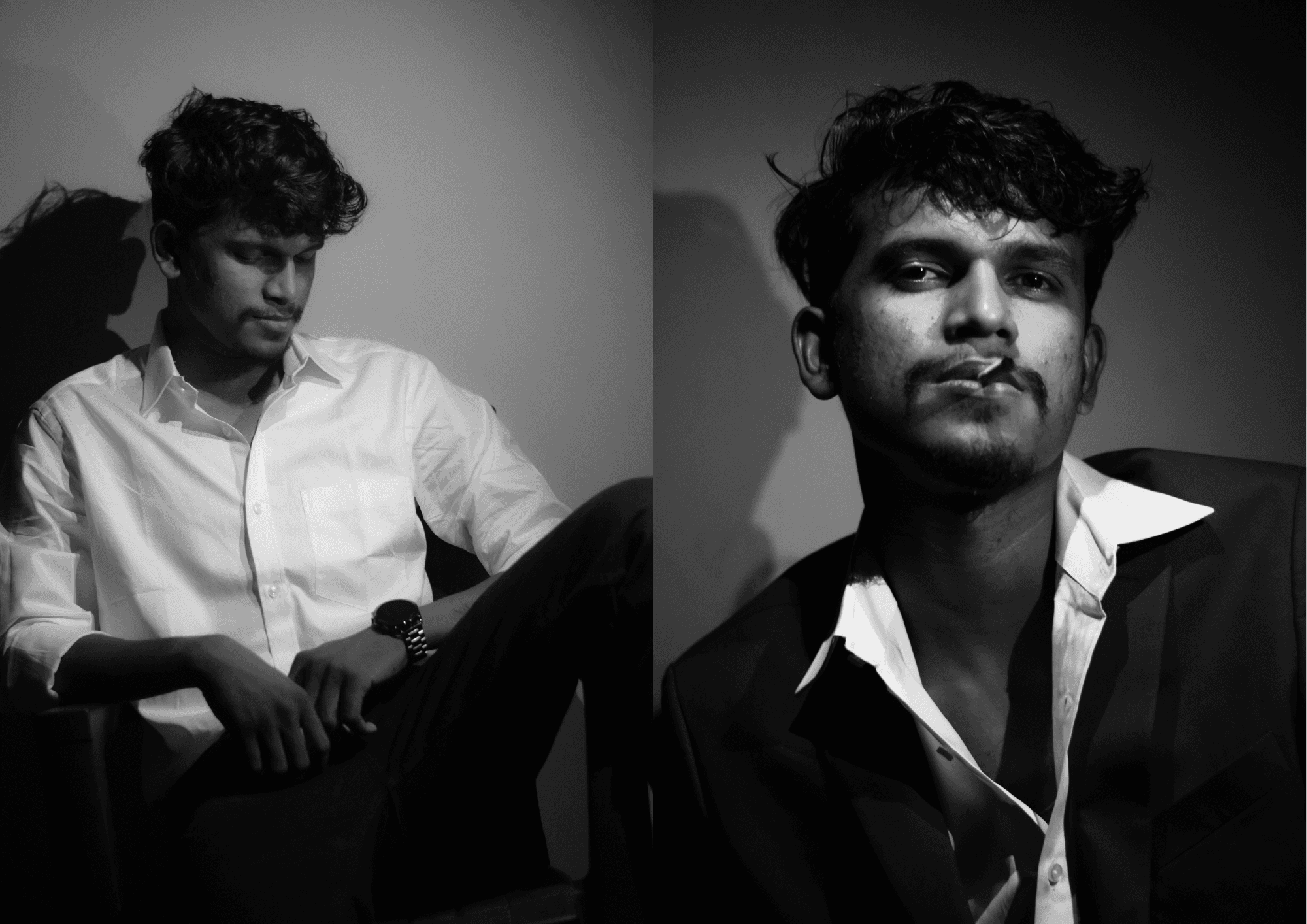 An experimental black and white indoor shoot exploring the allure and ambiguity of the modern Casanova archetype. Shot using a mobile flashlight for dramatic shadows and intimacy, the series plays with light, expression, and texture to evoke a moody, cinematic atmosphere. This project was a creative study in minimal setups and character driven storytelling.